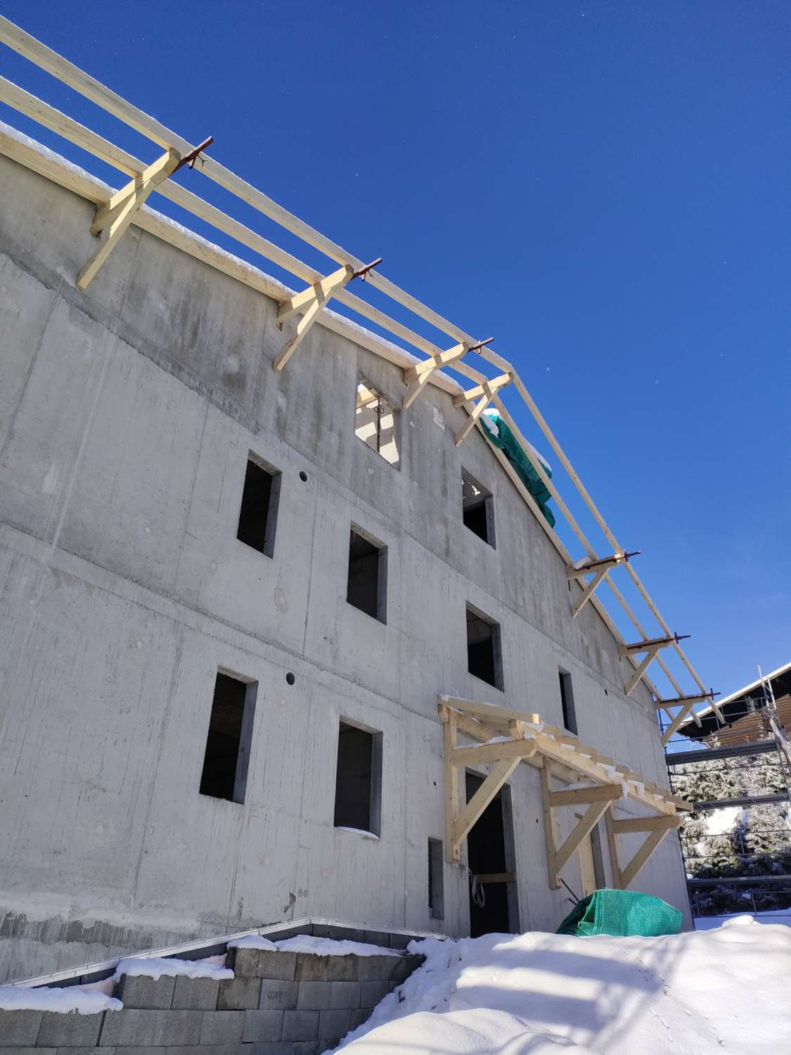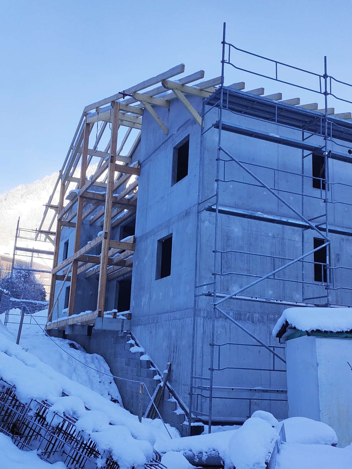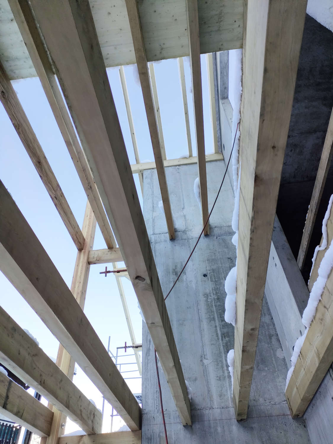 Notre charpentier LPS à Scionzier, œuvre à la concrétisation de ce nouveau projet malgré la neige qui est déjà arrivée en abondance.
